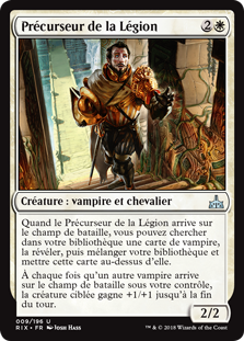 | Rules | When Forerunner of the Legion enters the battlefield, you may search your library for a Vampire card, reveal it, then shuffle and put that card on top. Whenever another Vampire enters the battlefield under your control, target creature gets +1/+1 until end of turn. |