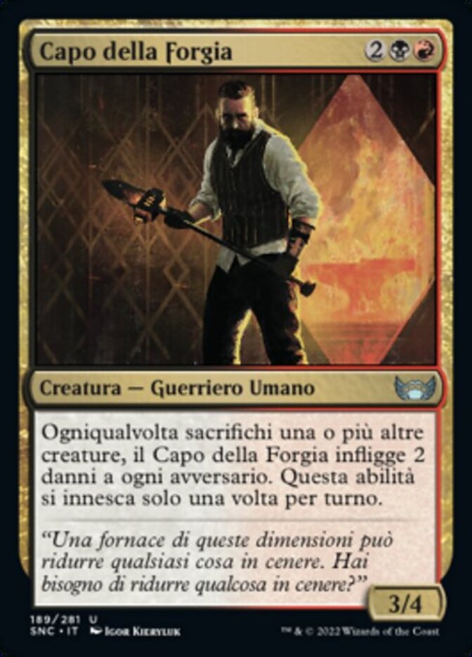 | Rules | Whenever you sacrifice one or more other creatures, Forge Boss deals 2 damage to each opponent. This ability triggers only once each turn. |