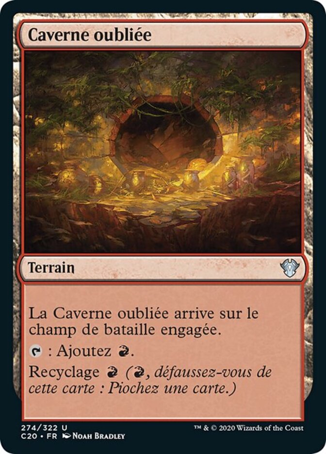 | Rules | Forgotten Cave enters the battlefield tapped. : Add . Cycling (, Discard this card: Draw a card.) |