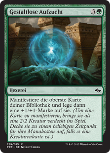 Rules Manifest the top card of your library, then put a +1/+1 counter on it. (To manifest a card, put it onto the battlefield face down as a 2/2 creature. Turn it face up any time for its mana cost if it's a creature card.)