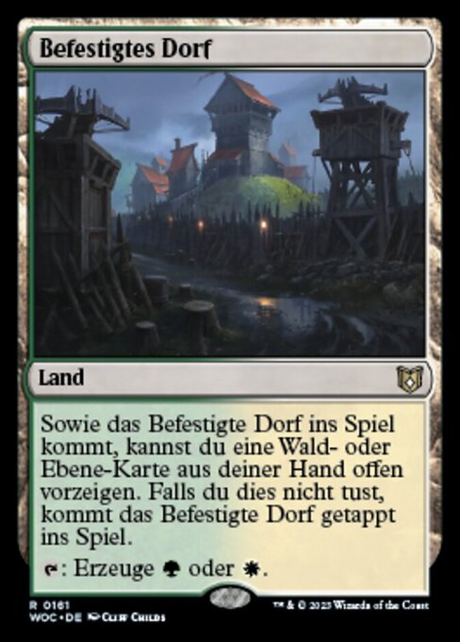 | Rules | As Fortified Village enters the battlefield, you may reveal a Forest or Plains card from your hand. If you don't, Fortified Village enters the battlefield tapped. : Add or . |