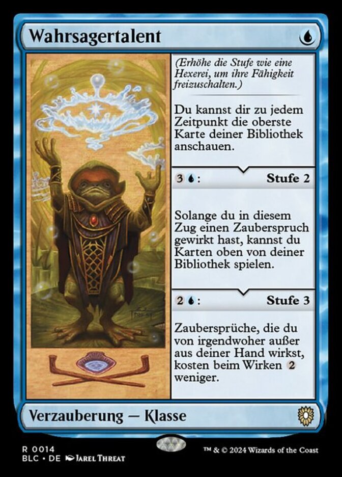 | Rules | (Gain the next level as a sorcery to add its ability.) You may look at the top card of your library any time. : Level 2 As long as you've cast a spell this turn, you may play cards from the top of your library. : Level 3 Spells you cast from anywhere other than your hand cost less to cast. |