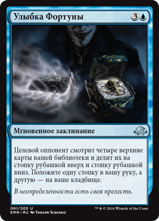 | Rules | Target opponent looks at the top four cards of your library and separates them into a face-down pile and a face-up pile. Put one pile into your hand and the other into your graveyard. |