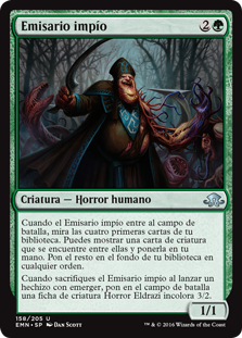 | Rules | When Foul Emissary enters the battlefield, look at the top four cards of your library. You may reveal a creature card from among them and put it into your hand. Put the rest on the bottom of your library in any order. When you sacrifice Foul Emissary while casting a spell with emerge, create a 3/2 colorless Eldrazi Horror creature token. |