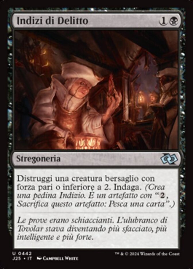 | Rules | Destroy target creature with power 2 or less. Investigate. (Create a colorless Clue artifact token with ", Sacrifice this artifact: Draw a card.") |