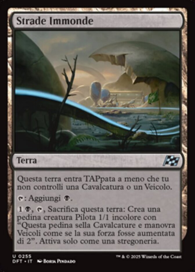 | Rules | This land enters tapped unless you control a Mount or Vehicle. : Add . , , Sacrifice this land: Create a 1/1 colorless Pilot creature token with "This token saddles Mounts and crews Vehicles as though its power were 2 greater." Activate only as a sorcery. |