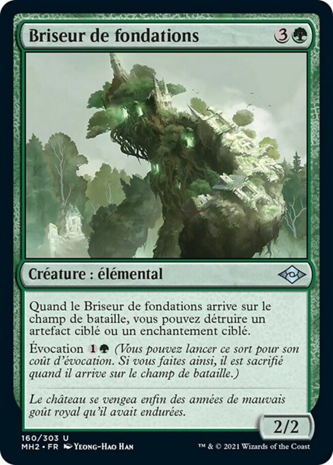 | Rules | When Foundation Breaker enters the battlefield, you may destroy target artifact or enchantment. Evoke (You may cast this spell for its evoke cost. If you do, it's sacrificed when it enters the battlefield.) |