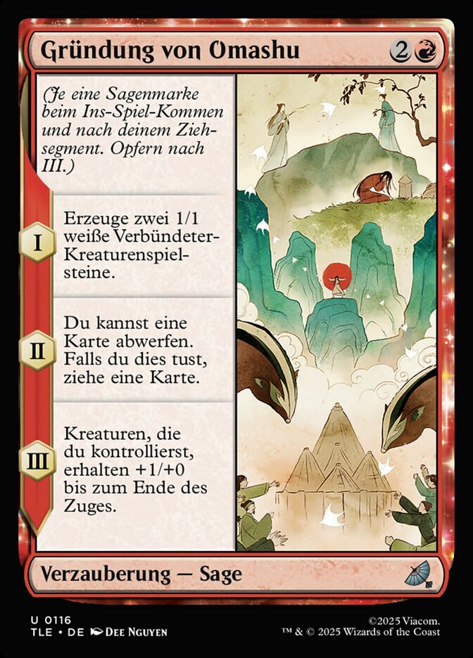 | Rules | (As this Saga enters and after your draw step, add a lore counter. Sacrifice after III.) I — Create two 1/1 white Ally creature tokens. II — You may discard a card. If you do, draw a card. III — Creatures you control get +1/+0 until end of turn. |