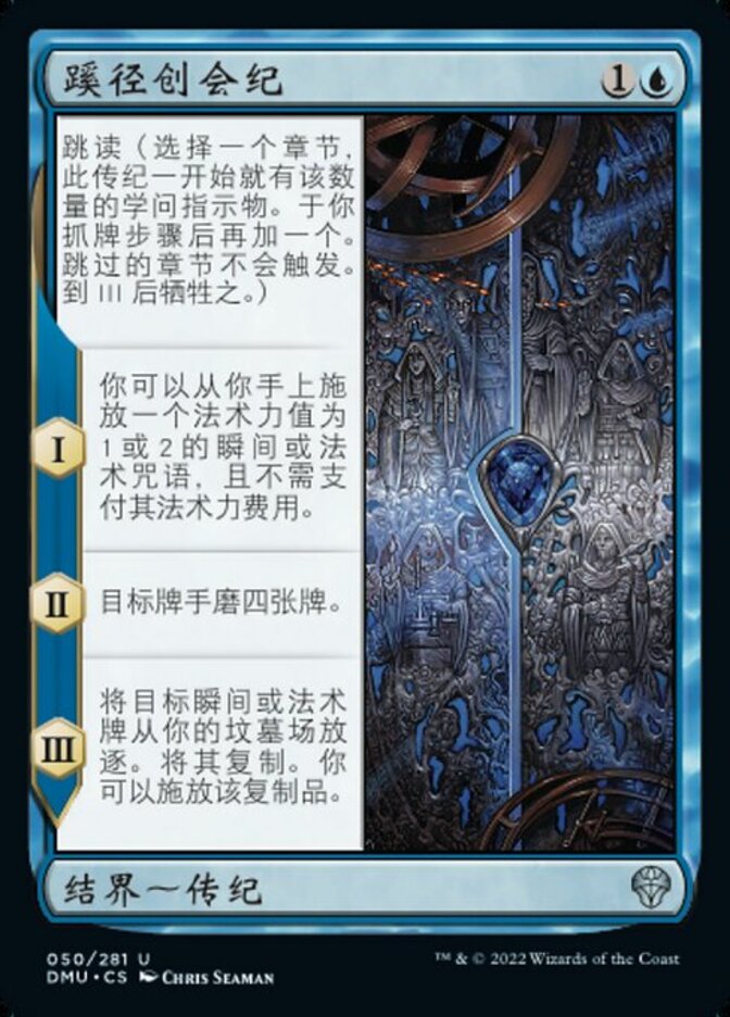 | Rules | Read ahead (Choose a chapter and start with that many lore counters. Add one after your draw step. Skipped chapters don't trigger. Sacrifice after III.) I — You may cast an instant or sorcery spell with mana value 1 or 2 from your hand without paying its mana cost. II — Target player mills four cards. III — Exile target instant or sorcery card from your graveyard. Copy it. You may cast the copy. |