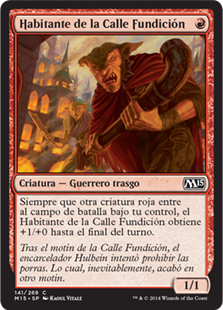 | Rules | Whenever another red creature enters the battlefield under your control, Foundry Street Denizen gets +1/+0 until end of turn. |
