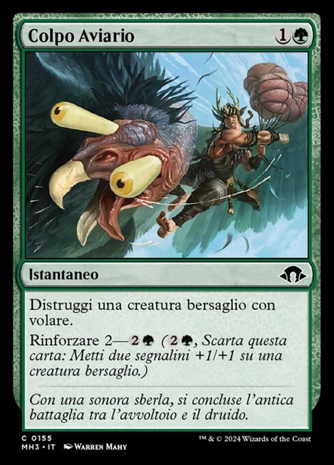 | Rules | Destroy target creature with flying. Reinforce 2— (, Discard this card: Put two +1/+1 counters on target creature.) |