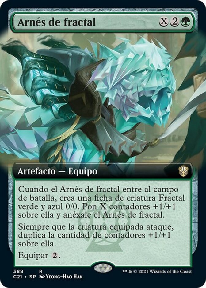 | Rules | When Fractal Harness enters the battlefield, create a 0/0 green and blue Fractal creature token. Put X +1/+1 counters on it and attach Fractal Harness to it. Whenever equipped creature attacks, double the number of +1/+1 counters on it. Equip |
