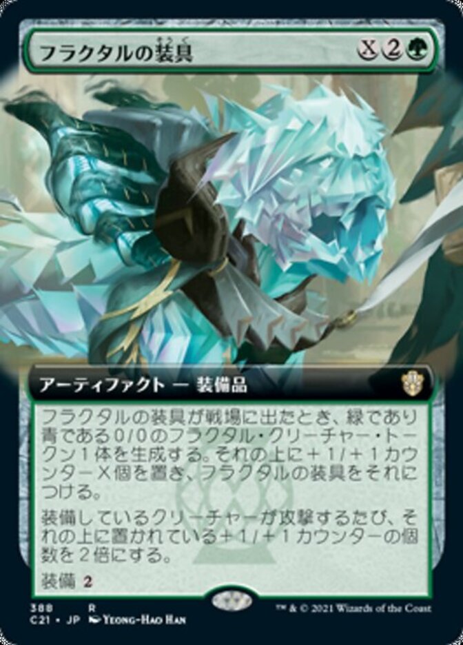 | Rules | When Fractal Harness enters the battlefield, create a 0/0 green and blue Fractal creature token. Put X +1/+1 counters on it and attach Fractal Harness to it. Whenever equipped creature attacks, double the number of +1/+1 counters on it. Equip |
