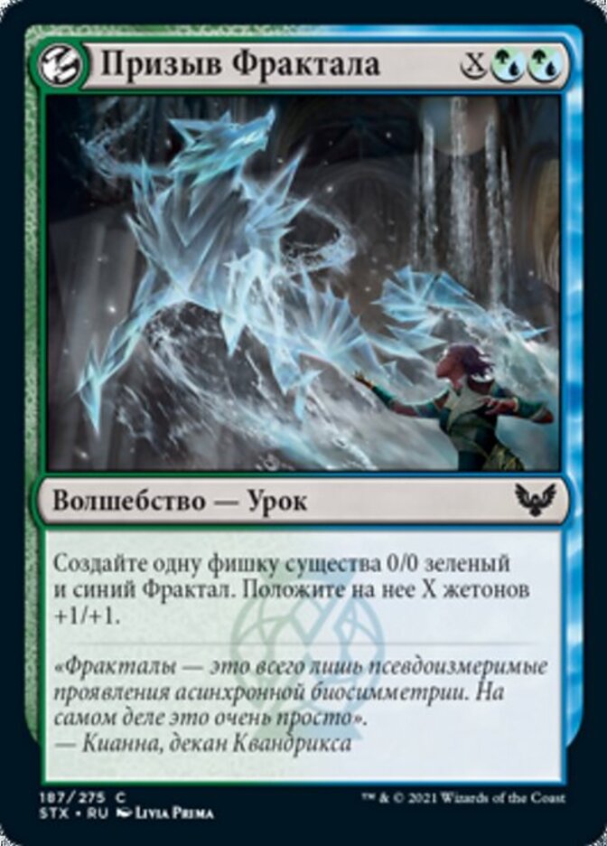 | Rules | Create a 0/0 green and blue Fractal creature token. Put X +1/+1 counters on it. |