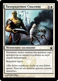 | Rules | Put any number of target artifact cards from your graveyard on top of your library. Draw a card. |