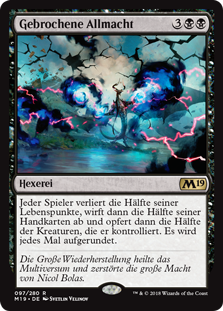 | Rules | Each player loses half their life, then discards half the cards in their hand, then sacrifices half the creatures they control. Round up each time. |