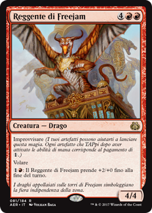| Rules | Improvise (Your artifacts can help cast this spell. Each artifact you tap after you're done activating mana abilities pays for .) Flying : Freejam Regent gets +2/+0 until end of turn. |