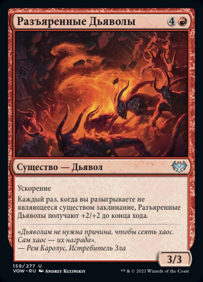 | Rules | Haste Whenever you cast a noncreature spell, Frenzied Devils gets +2/+2 until end of turn. |