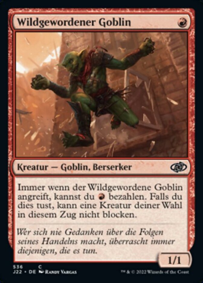 | Rules | Whenever Frenzied Goblin attacks, you may pay . If you do, target creature can't block this turn. |