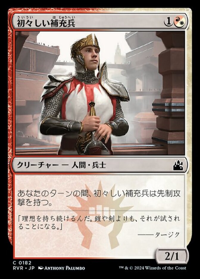 | Rules | As long as it's your turn, Fresh-Faced Recruit has first strike. |