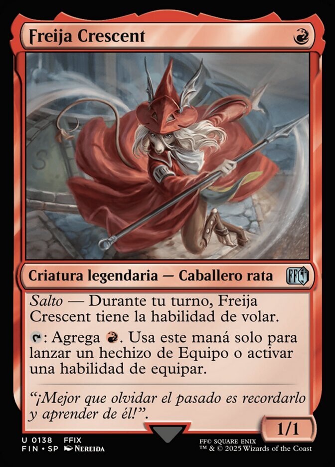 | Rules | Jump — During your turn, Freya Crescent has flying. : Add . Spend this mana only to cast an Equipment spell or activate an equip ability. |