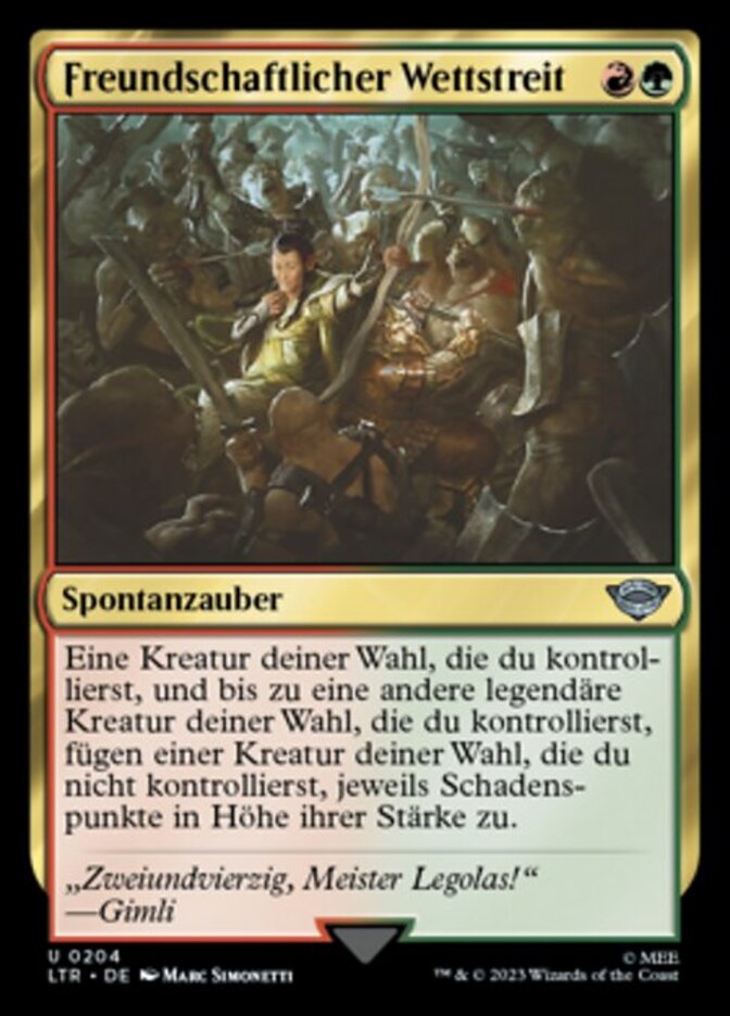 | Rules | Target creature you control and up to one other target legendary creature you control each deal damage equal to their power to target creature you don't control. |