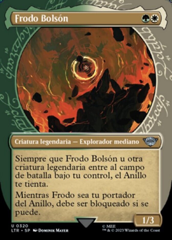 | Rules | Whenever Frodo Baggins or another legendary creature enters the battlefield under your control, the Ring tempts you. As long as Frodo is your Ring-bearer, it must be blocked if able. |