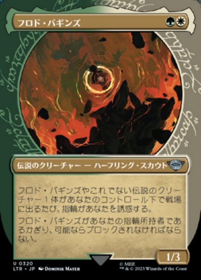 | Rules | Whenever Frodo Baggins or another legendary creature enters the battlefield under your control, the Ring tempts you. As long as Frodo is your Ring-bearer, it must be blocked if able. |