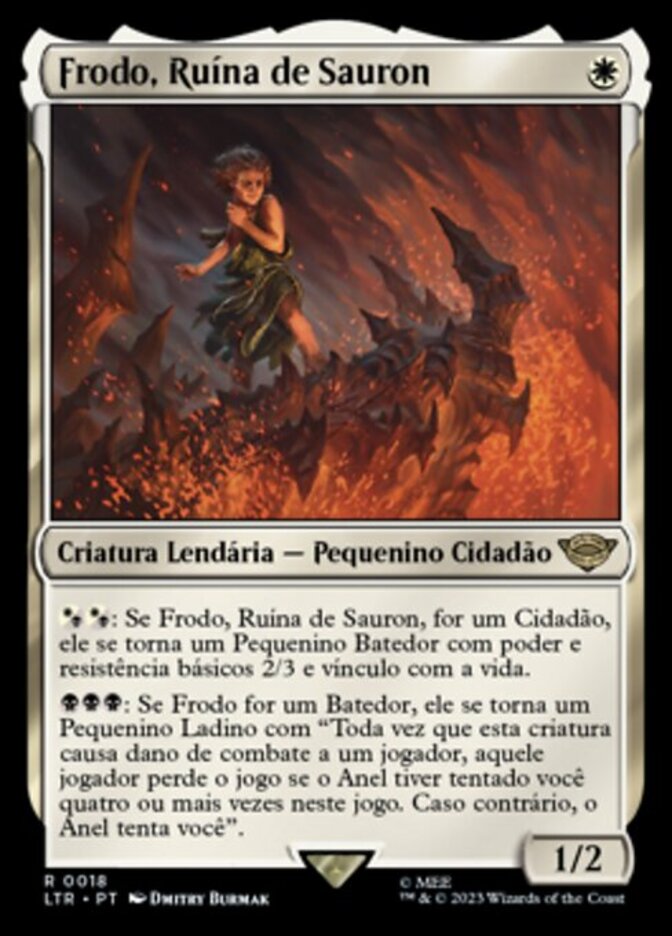 | Rules | : If Frodo, Sauron's Bane is a Citizen, it becomes a Halfling Scout with base power and toughness 2/3 and lifelink. : If Frodo is a Scout, it becomes a Halfling Rogue with "Whenever this creature deals combat damage to a player, that player loses the game if the Ring has tempted you four or more times this game. Otherwise, the Ring tempts you." |