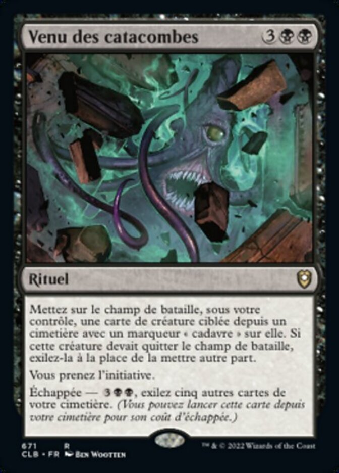 | Rules | Return target creature card from a graveyard to the battlefield with a corpse counter on it. If that creature would leave the battlefield, exile it instead of putting it anywhere else. You take the initiative. Escape—, Exile four other cards from your graveyard. (You may cast this card from your graveyard for its escape cost.) |