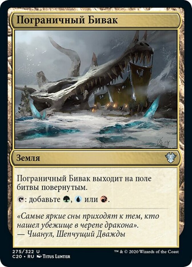 | Rules | Frontier Bivouac enters the battlefield tapped. : Add , , or . |