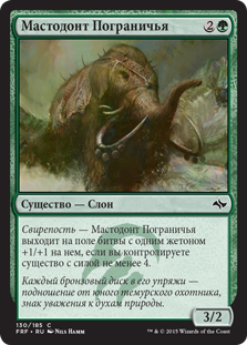 | Rules | Ferocious — Frontier Mastodon enters the battlefield with a +1/+1 counter on it if you control a creature with power 4 or greater. |
