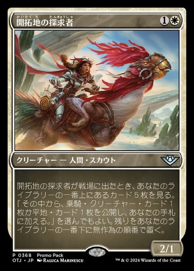 | Rules | When Frontier Seeker enters the battlefield, look at the top five cards of your library. You may reveal a Mount creature card or a Plains card from among them and put it into your hand. Put the rest on the bottom of your library in a random order. |