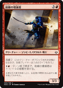 | Rules | Afflict 2 (Whenever this creature becomes blocked, defending player loses 2 life.) : Frontline Devastator gets +1/+0 until end of turn. |