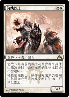 | Rules | Battalion — Whenever Frontline Medic and at least two other creatures attack, creatures you control gain indestructible until end of turn. Sacrifice Frontline Medic: Counter target spell with in its mana cost unless its controller pays . |