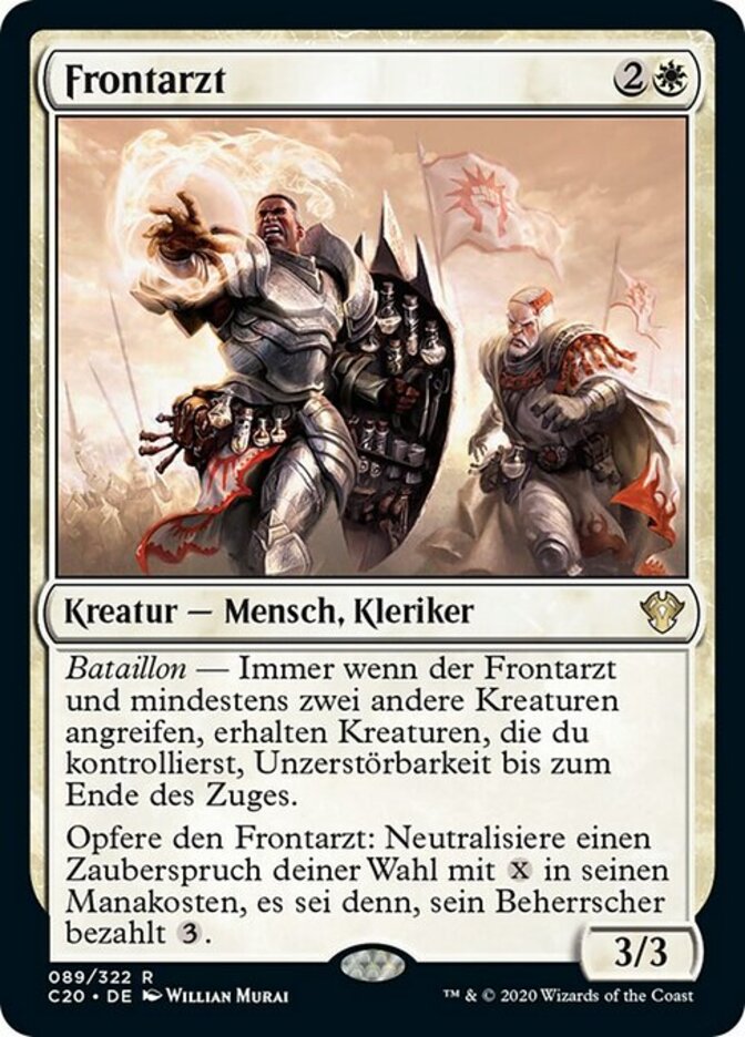 | Rules | Battalion — Whenever Frontline Medic and at least two other creatures attack, creatures you control gain indestructible until end of turn. Sacrifice Frontline Medic: Counter target spell with in its mana cost unless its controller pays . |