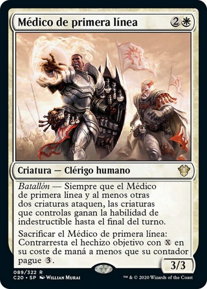 | Rules | Battalion — Whenever Frontline Medic and at least two other creatures attack, creatures you control gain indestructible until end of turn. Sacrifice Frontline Medic: Counter target spell with in its mana cost unless its controller pays . |