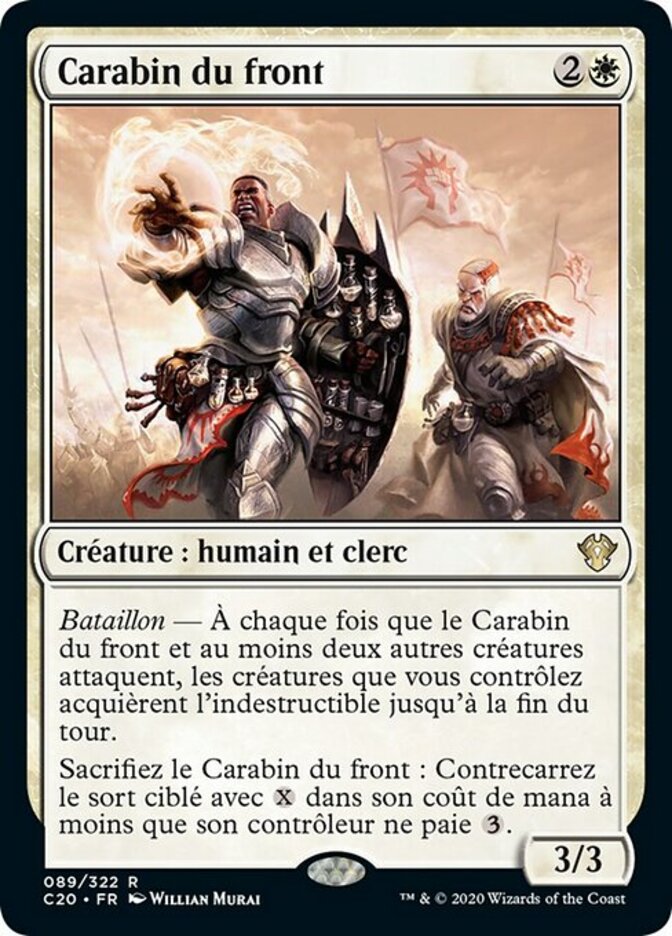 | Rules | Battalion — Whenever Frontline Medic and at least two other creatures attack, creatures you control gain indestructible until end of turn. Sacrifice Frontline Medic: Counter target spell with in its mana cost unless its controller pays . |
