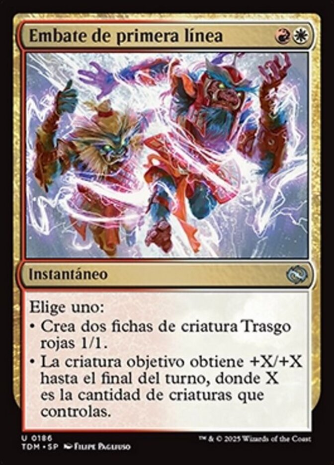 | Rules | Choose one — • Create two 1/1 red Goblin creature tokens. • Target creature gets +X/+X until end of turn, where X is the number of creatures you control. |