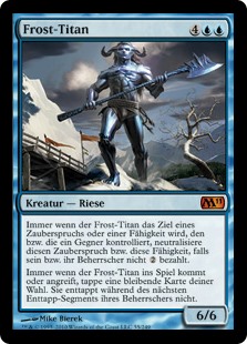 | Rules | Whenever Frost Titan becomes the target of a spell or ability an opponent controls, counter that spell or ability unless its controller pays . Whenever Frost Titan enters the battlefield or attacks, tap target permanent. It doesn't untap during its controller's next untap step. |
