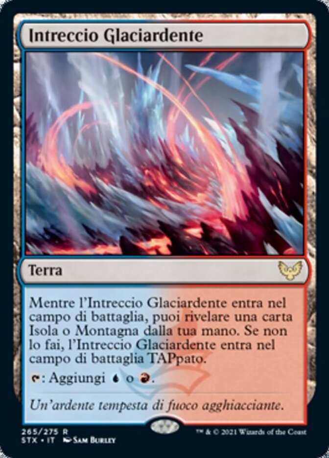 | Rules | As Frostboil Snarl enters the battlefield, you may reveal an Island or Mountain card from your hand. If you don't, Frostboil Snarl enters the battlefield tapped. : Add or . |