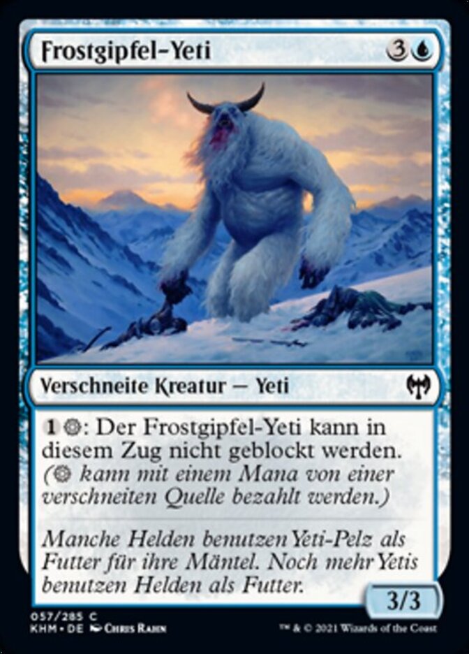 | Rules | : Frostpeak Yeti can't be blocked this turn. ( can be paid with one mana from a snow source.) |