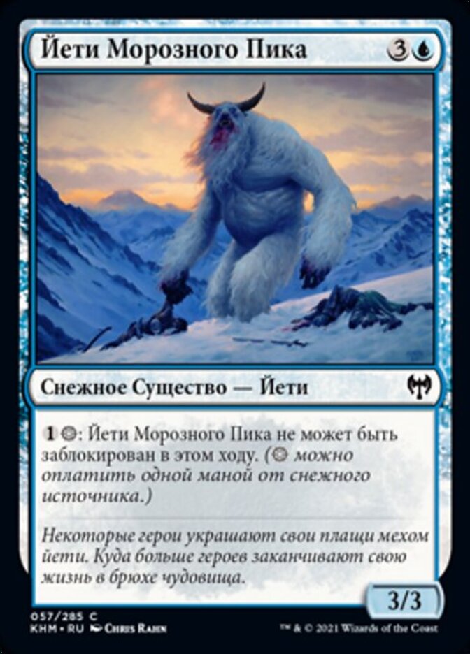| Rules | : Frostpeak Yeti can't be blocked this turn. ( can be paid with one mana from a snow source.) |