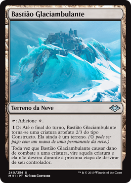| Rules | : Add . : Until end of turn, Frostwalk Bastion becomes a 2/3 Construct artifact creature. It's still a land. ( can be paid with one mana from a snow source.) Whenever Frostwalk Bastion deals combat damage to a creature, tap that creature and it doesn't untap during its controller's next untap step. |