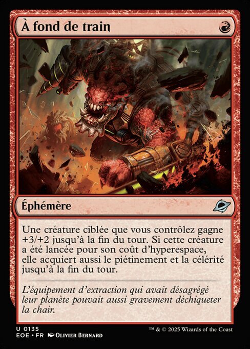 | Rules | Target creature you control gets +3/+2 until end of turn. If that creature was cast for its warp cost, it also gains trample and haste until end of turn. |