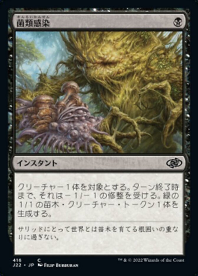 | Rules | Target creature gets -1/-1 until end of turn. Create a 1/1 green Saproling creature token. |