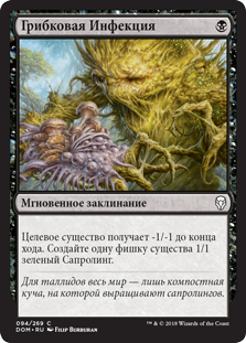 | Rules | Target creature gets -1/-1 until end of turn. Create a 1/1 green Saproling creature token. |