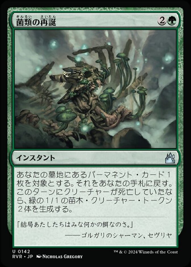 | Rules | Return target permanent card from your graveyard to your hand. If a creature died this turn, create two 1/1 green Saproling creature tokens. |