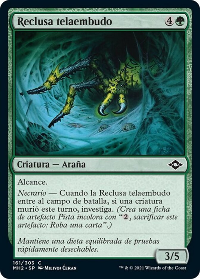 Morbid — When Funnel-Web Recluse enters the battlefield, if a creature died this turn, investigate. (Create a colorless Clue artifact token with ", Sacrifice this artifact: Draw a card.")