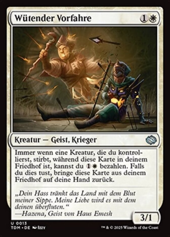 | Flavor | "Your hatred dampens the land with my kin's blood. My love will flood it with yours." —Hazena, spirit of House Emesh |